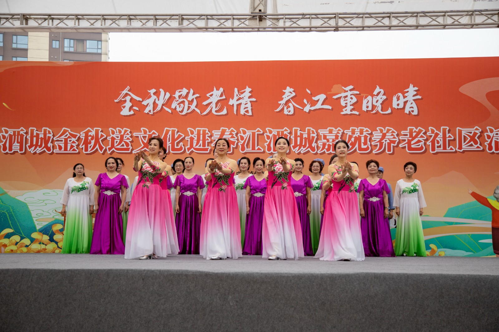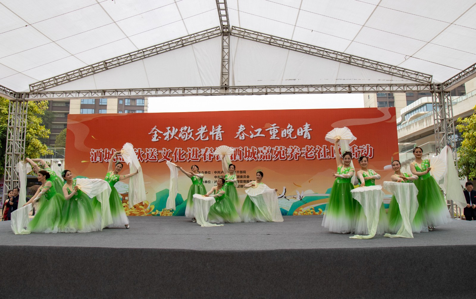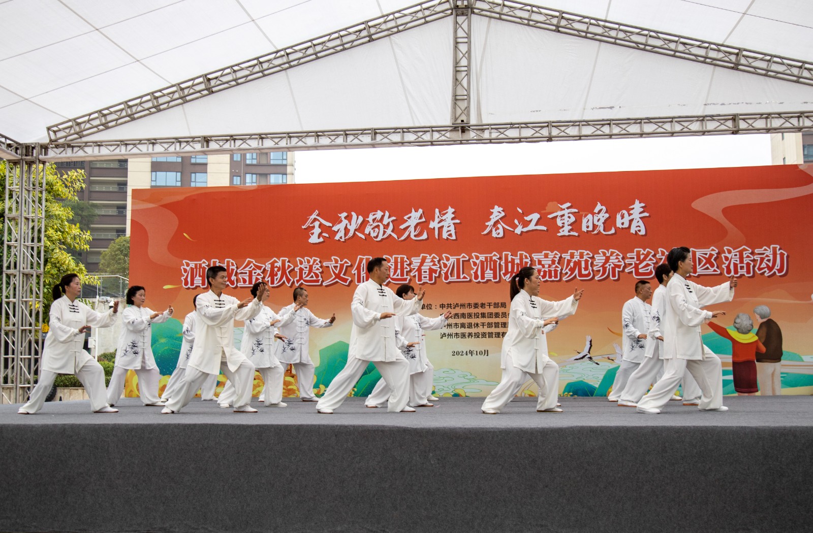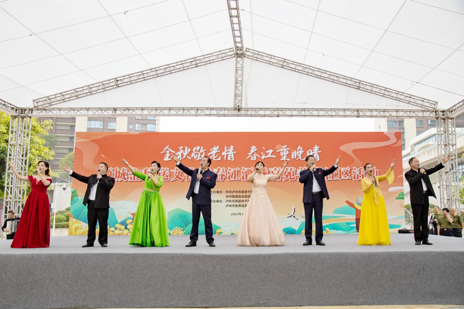 金秋送爽,丹桂飄香。為弘揚(yáng)中華民族尊老愛(ài)老的傳統(tǒng)美德,豐富老年朋友的文化生活,增強(qiáng)老同志的獲得感和幸福感,10月10日,由瀘州市委老干部局與西南醫(yī)投集團(tuán)聯(lián)合舉辦的“金秋敬老情·春江重晚晴”酒城金秋送文化活動(dòng)在春江酒城嘉苑養(yǎng)老社區(qū)舉行,為社區(qū)老年朋友獻(xiàn)上了一場(chǎng)文化盛宴。市委組織部副部長(zhǎng)、老干部局局長(zhǎng)唐雯,瀘州發(fā)展控股集團(tuán)副總經(jīng)理、西南醫(yī)投集團(tuán)黨委書記、董事長(zhǎng)林健出席活動(dòng)。